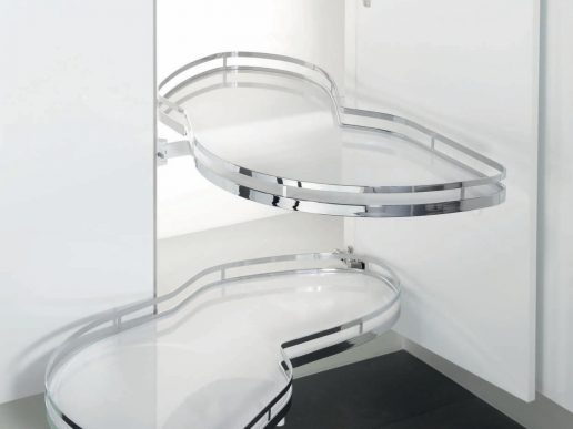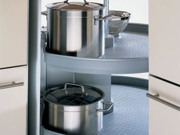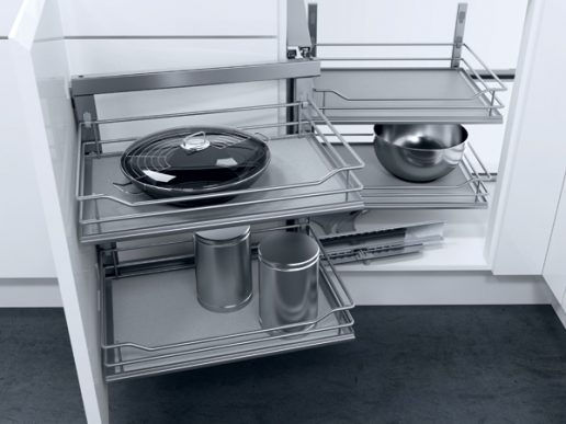 LeMans II is a corner unit solution by Häfele with two swinging trays. It allows you to store all your pots, pans and other appliances seamlessly, while still being easy to reach.