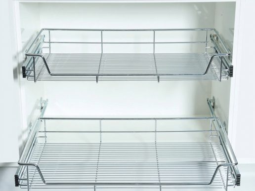 Modern sliding technology makes our line of wire pull-outs an effective drawer and cabinet organiser. Designed by our industry partner Wilson & Bradley, these pull out wire baskets can hold up to 45kg at once and come in a fine chrome finish.